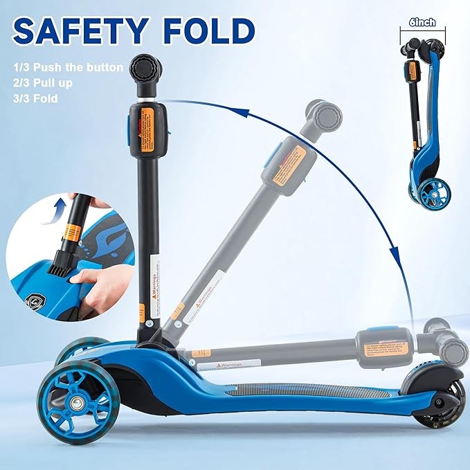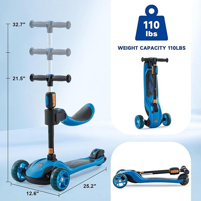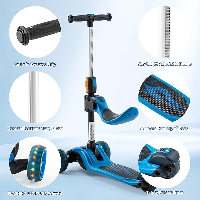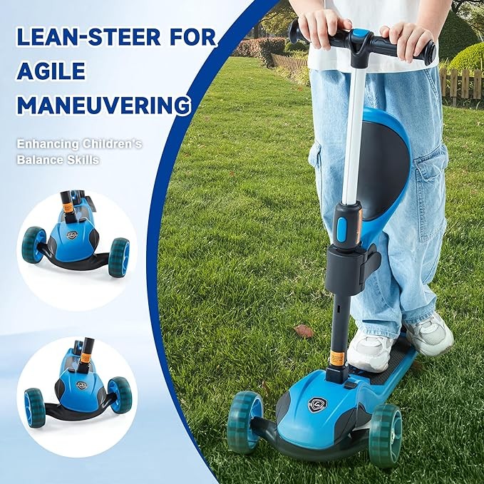 GLAMUP Kick Scooter Adjustable Height Adjustable Handlebar,Kids Scooter 3 Wheel with LED Lights,Suitable Kids Ages 2,Ages 6,Ages 8,Extra Wide Deck for Boys and Girls, Black