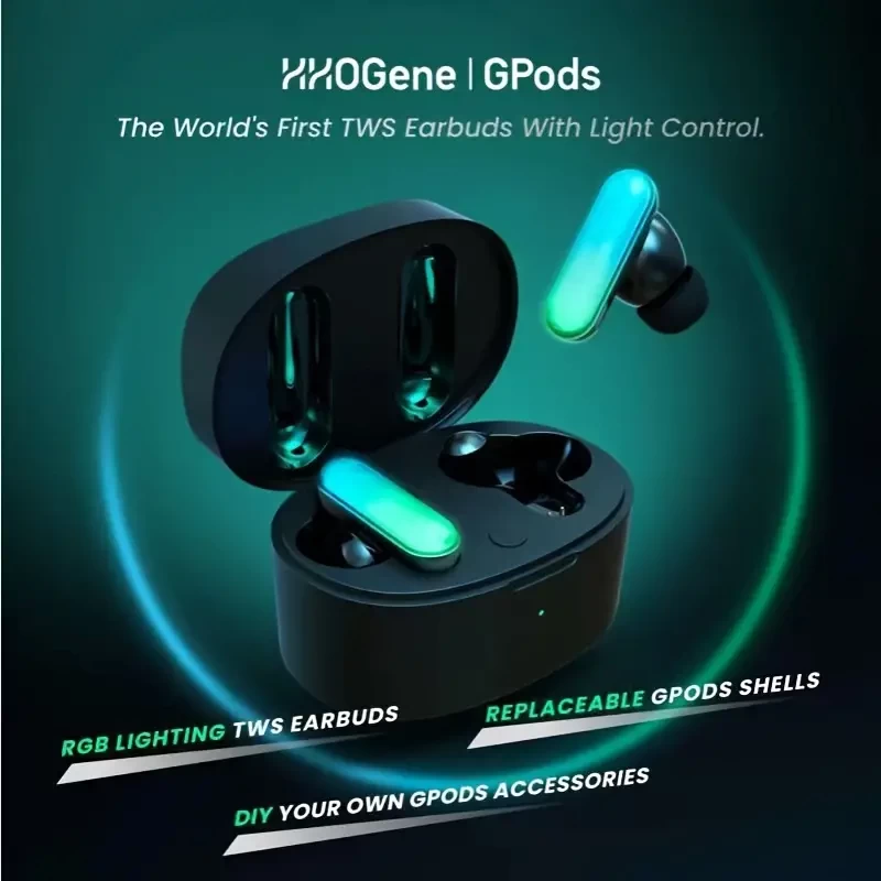 HHOGene GPods Digital Earphone With Noise Reduction And True Wireless TWS Sports Running Light-up Earphones Earpods For Airpods White