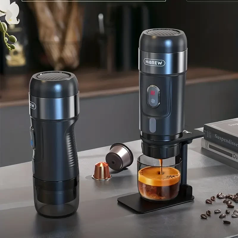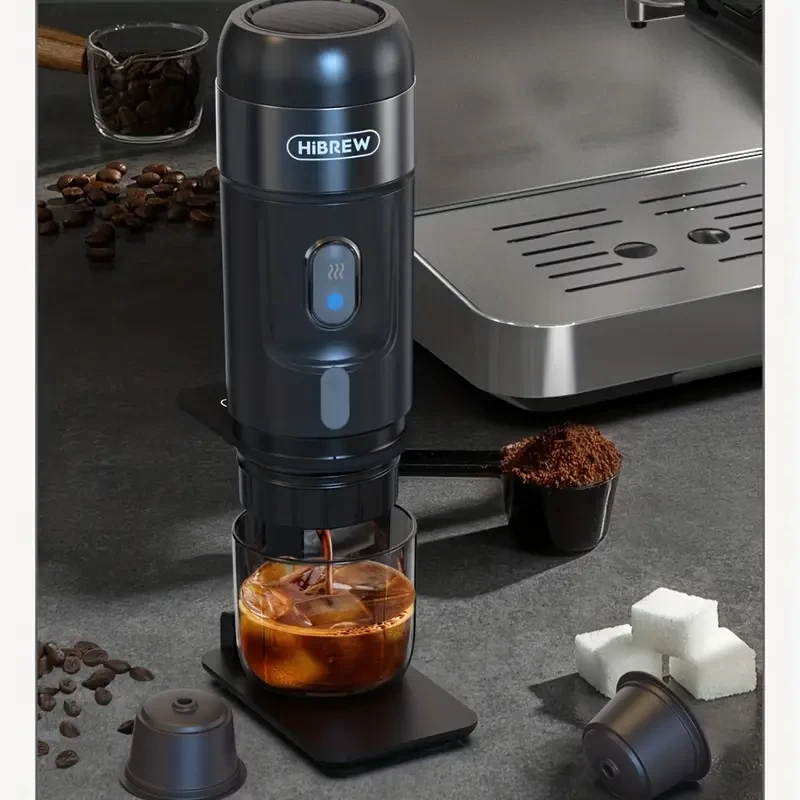 HiBREW Portable Coffee Machine For Car & Home,DC12V Expresso Coffee Maker Fit Nexpresso Dolce Pod Capsule Coffee Powder H4A