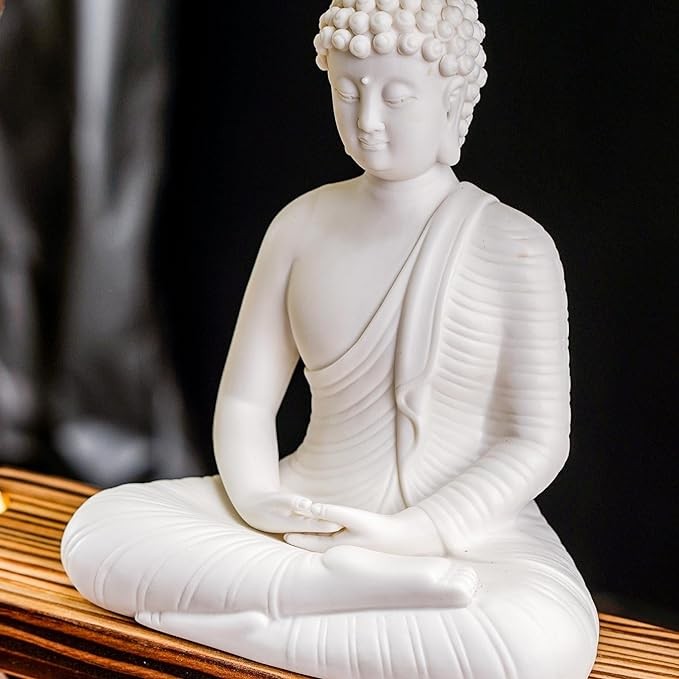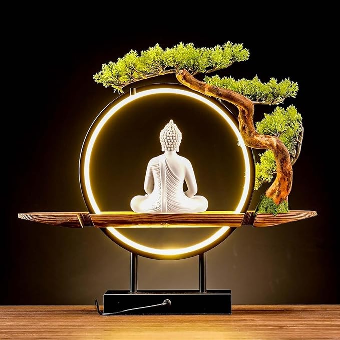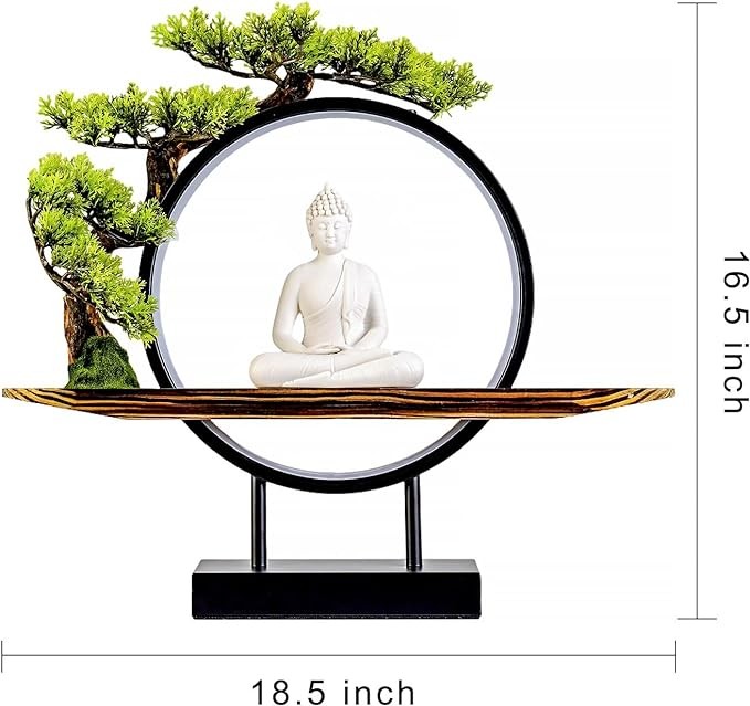 Houlu White Buddha with green artificial tree and LED round table lamp, Interior Ceramic Buddha home decor,16.5 inches (about 41.9 cm)
