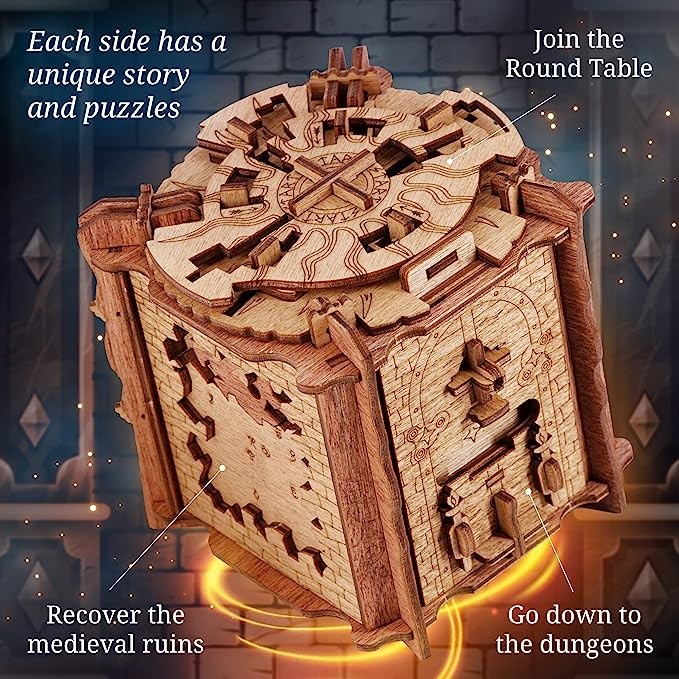 iDventure Cluebox - The Trial of Camelot - Escape Room Games - Jigsaw Box - 3D Wooden jigsaw Puzzle - Continuous Jigsaw Puzzle - Adult 3D Jigsaw Puzzle - Brain Teaser - Birthday gift gadget for men -