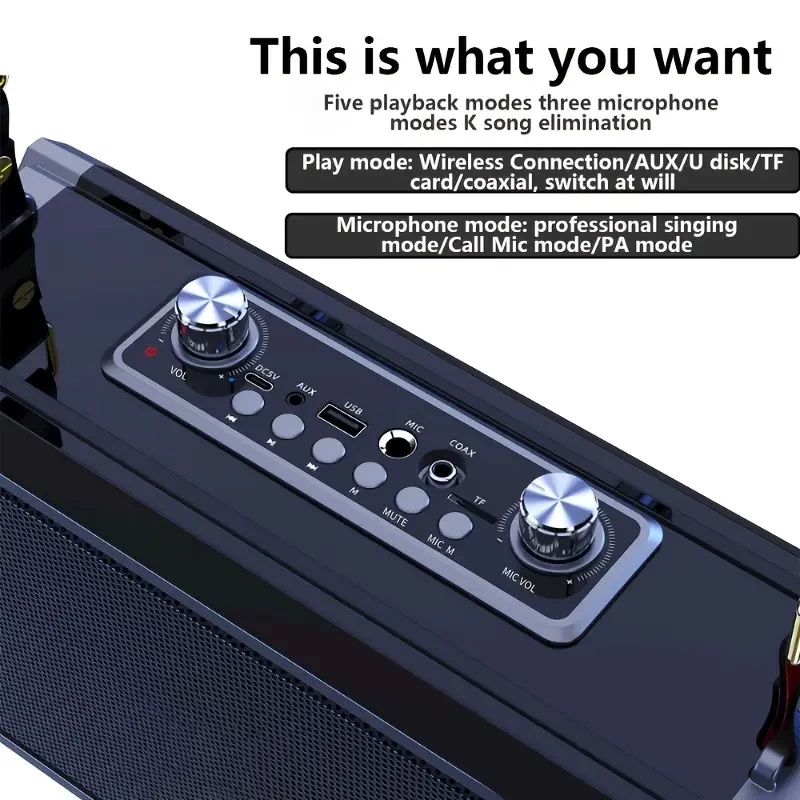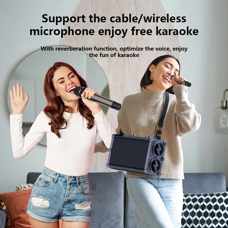Karaoke Machine With 2 UHF Wireless Microphones, Portable Wireless Connected Speaker With Shoulder Strap
