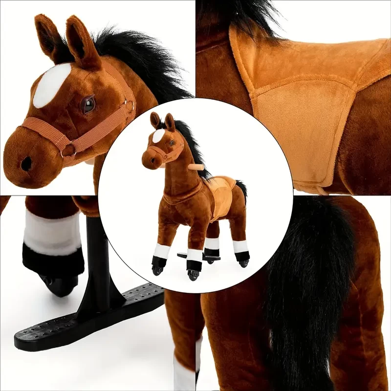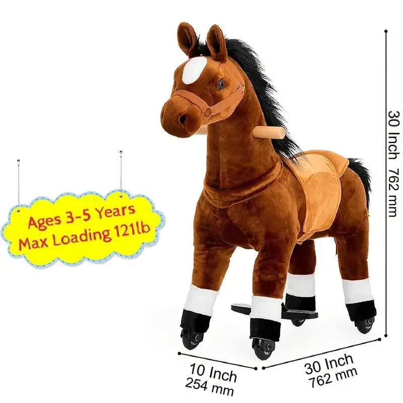 Kids' Plush toy,Walking Horse Toy that can Ride On with Wheels and Realistic Sounds, Horse Toy, Plush Walking Animal Chocolate Brown Horse