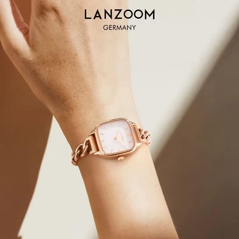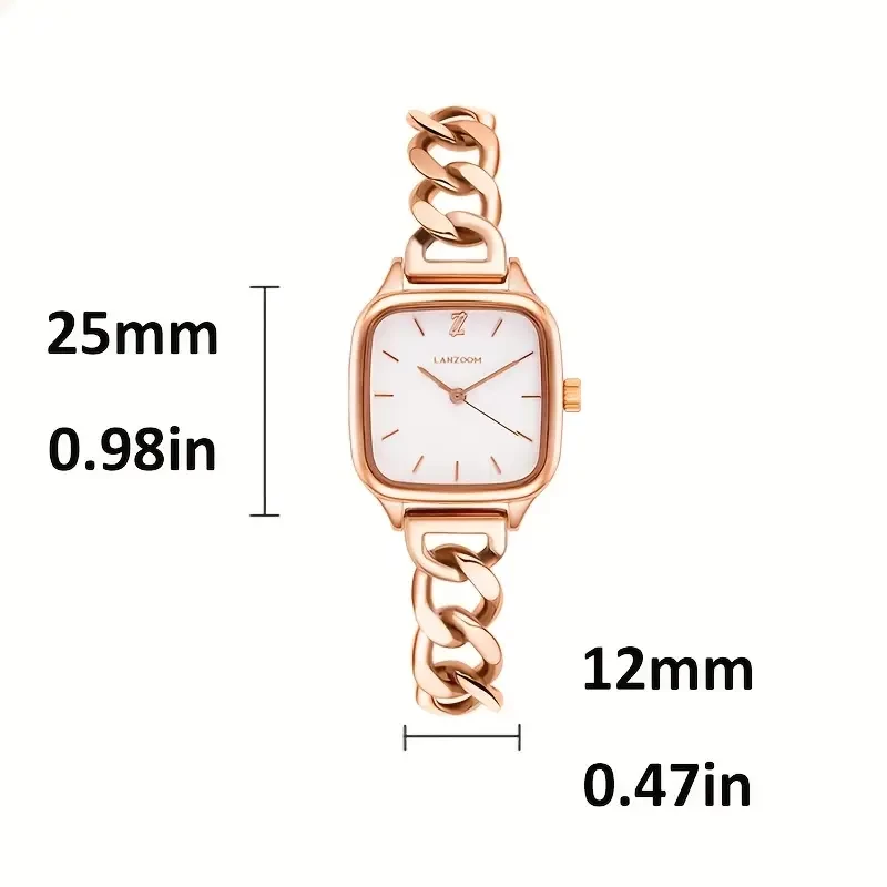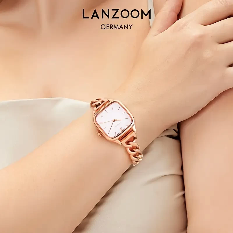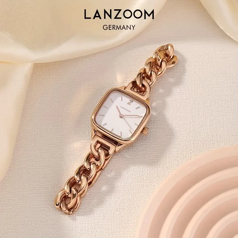 LANZOOM Women's Watch Minimalist Square Pointer Quartz Watch WR Fashion Analog Steel Bracelet Wrist Watch