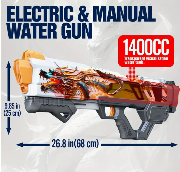Large electric water gun toy, with manual lunch and electric automatic lunch, large capacity, long range, powerful electric water spray, suitable for adult outdoor toys