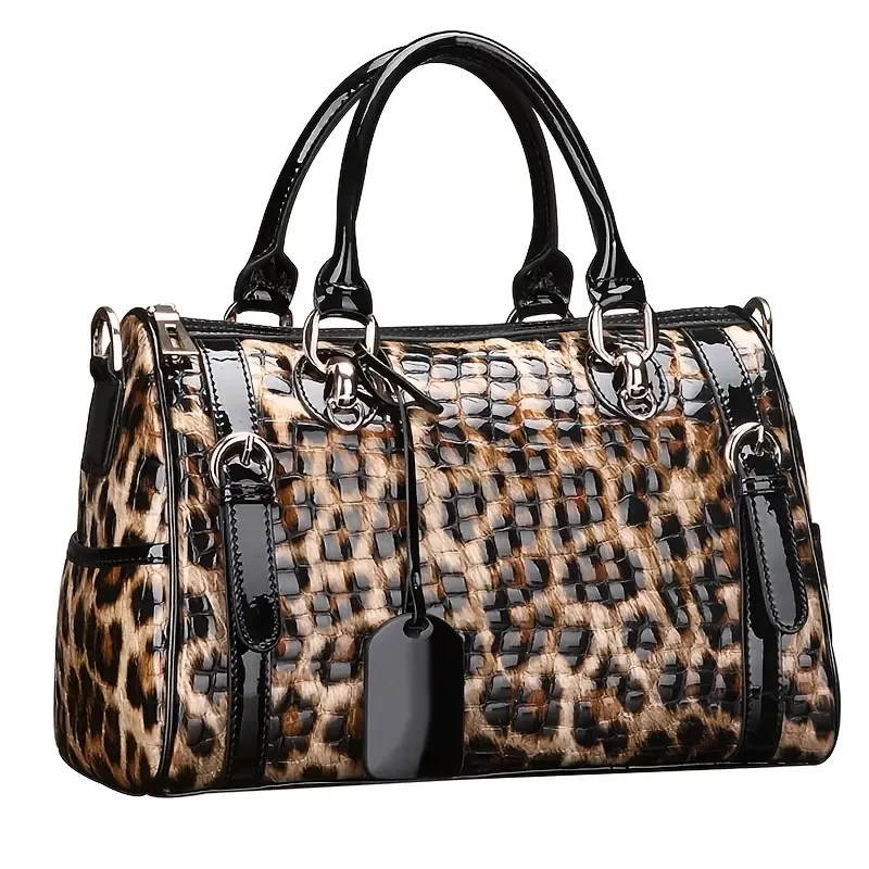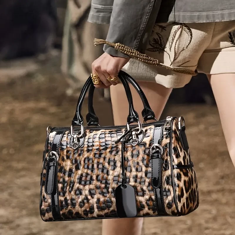 Leopard Print Handbag, Large Capacity Crossbody Bag, Women's Top Handle Satchel Purse