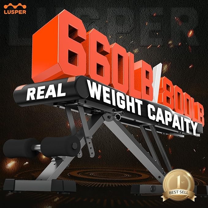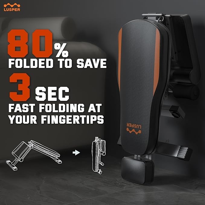 Lusper Adjustable Weight Bench Foldable - 660/800 Lb Stable Workout Bench, Extended head and neck protection design, 3 Sec Fast Folding Multi-Purpose for Full Body Workout