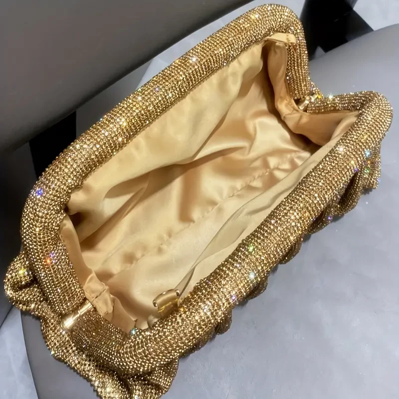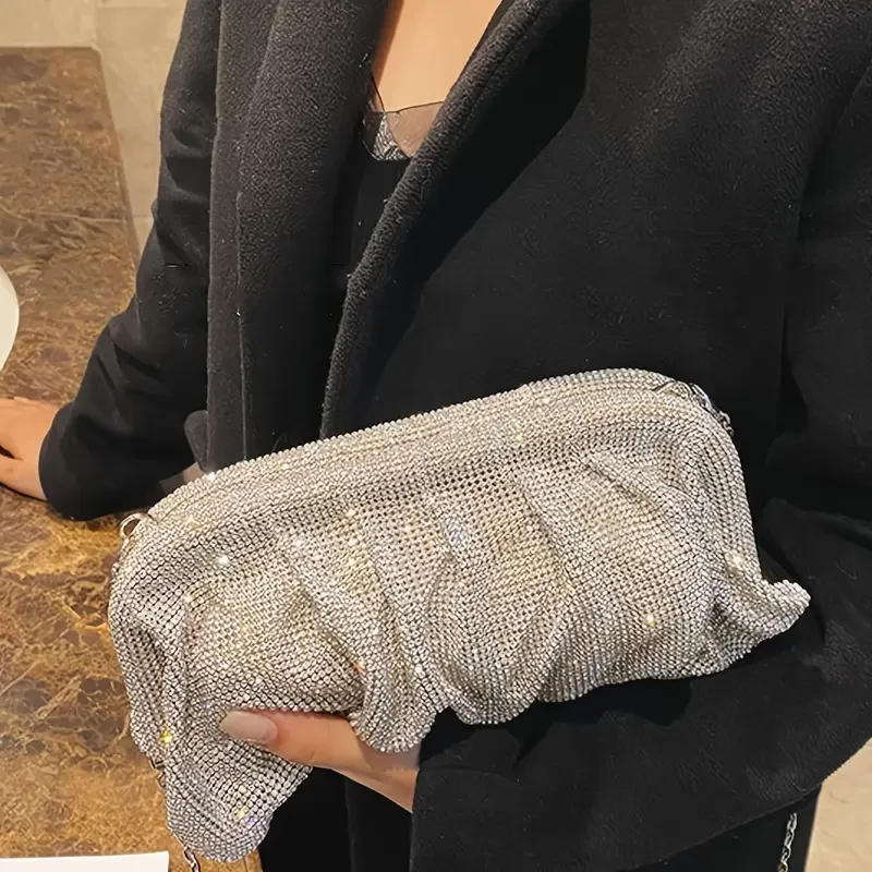Luxury Designer Handbags For Women, Rhinestone Cloud Ruched Evening Purse, Elegant Dress Clutch For Wedding Party Prom Banquet - Perfect for Carnival Mardi Gras