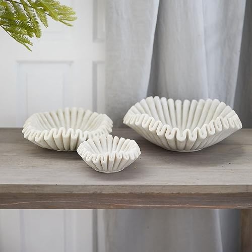 Marble Bowl Fruit Bowl, Stone Bowl Decorative Bowl Decorative Trays Marble Fruit Bowl Marble Ruffle Bowl Marble Floral Bowl Home Decor Gifts (Set of 9 and 12 inch)