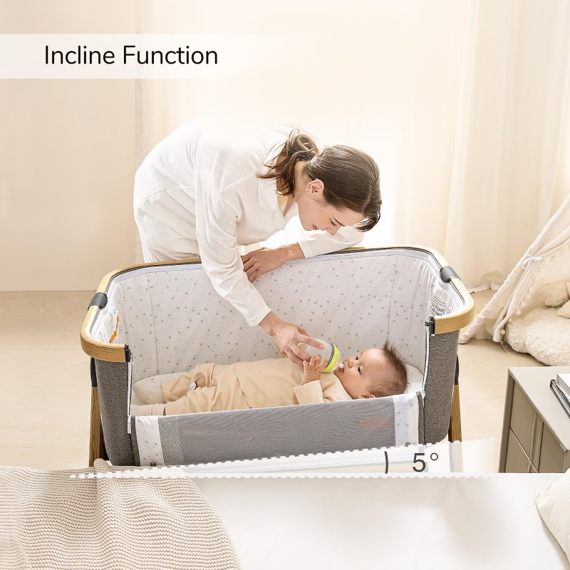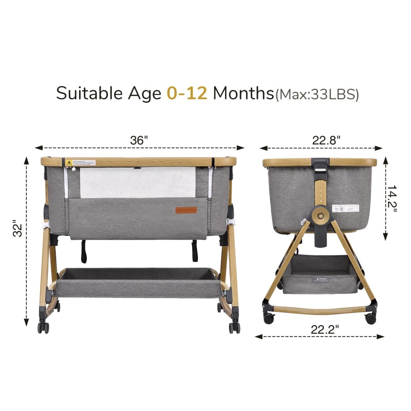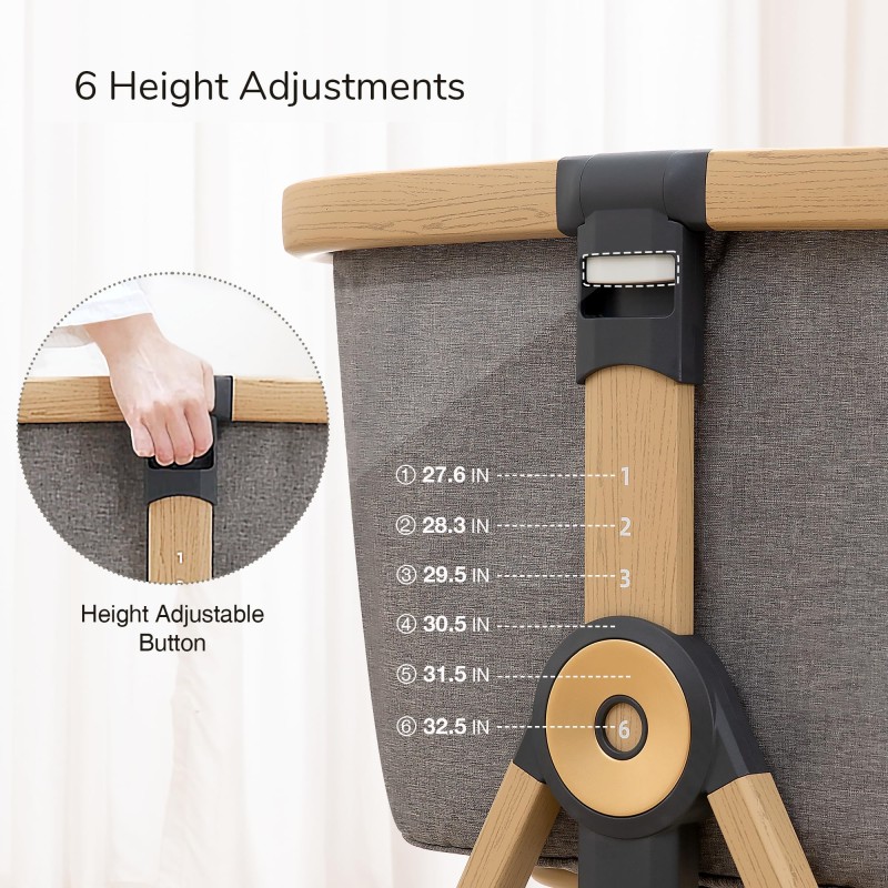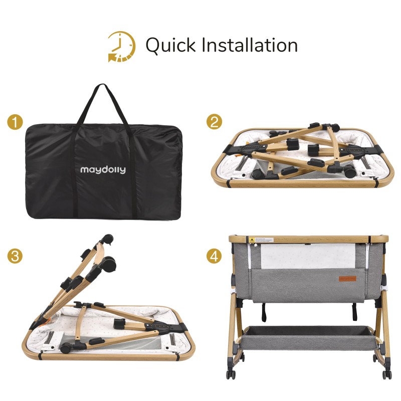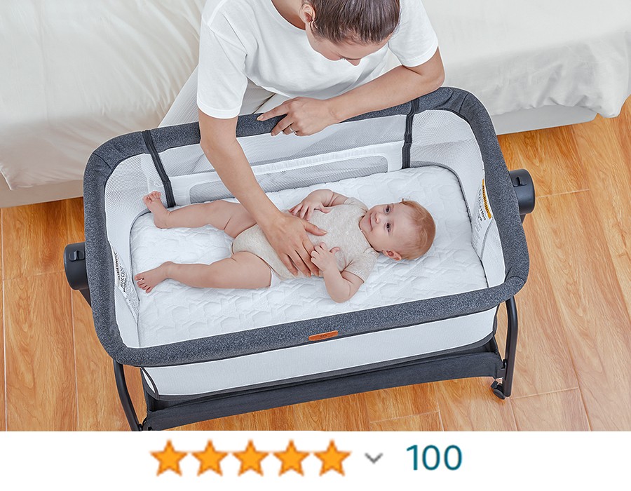 Maydolly Baby Bassinet & Bedside Sleeper, 3 in 1 Rocking Bassinet with Mattress & Sheet, Adjustable Height, Removable Breathable Cover, Easy Folding Infant Bassinet (Gray)