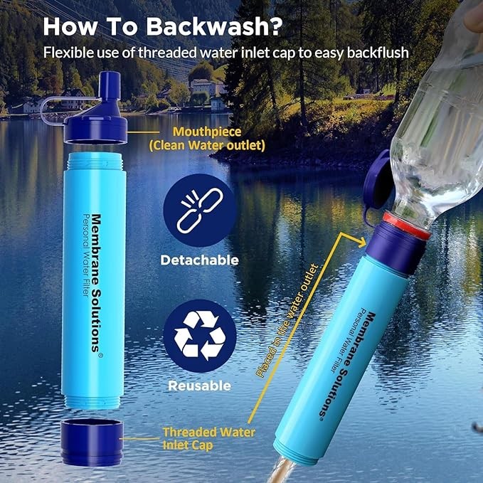 Membrane Solutions Straw Water Filter, Survival Filtration Portable Gear, Emergency Preparedness, Supply for Drinking Hiking Camping Travel Hunting Fishing Team Family Outing