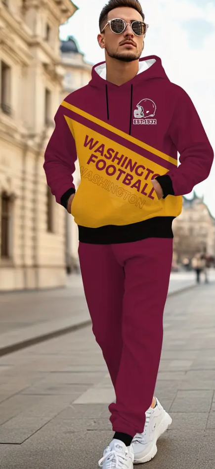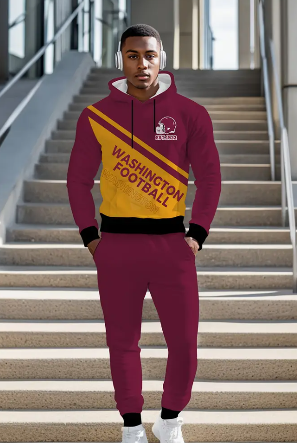 Men's hoodie set Tracksuit set Long-sleeved men's wear 2-piece stylish tracksuit casual suit for football fans for men printed with Washington