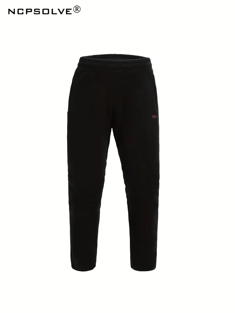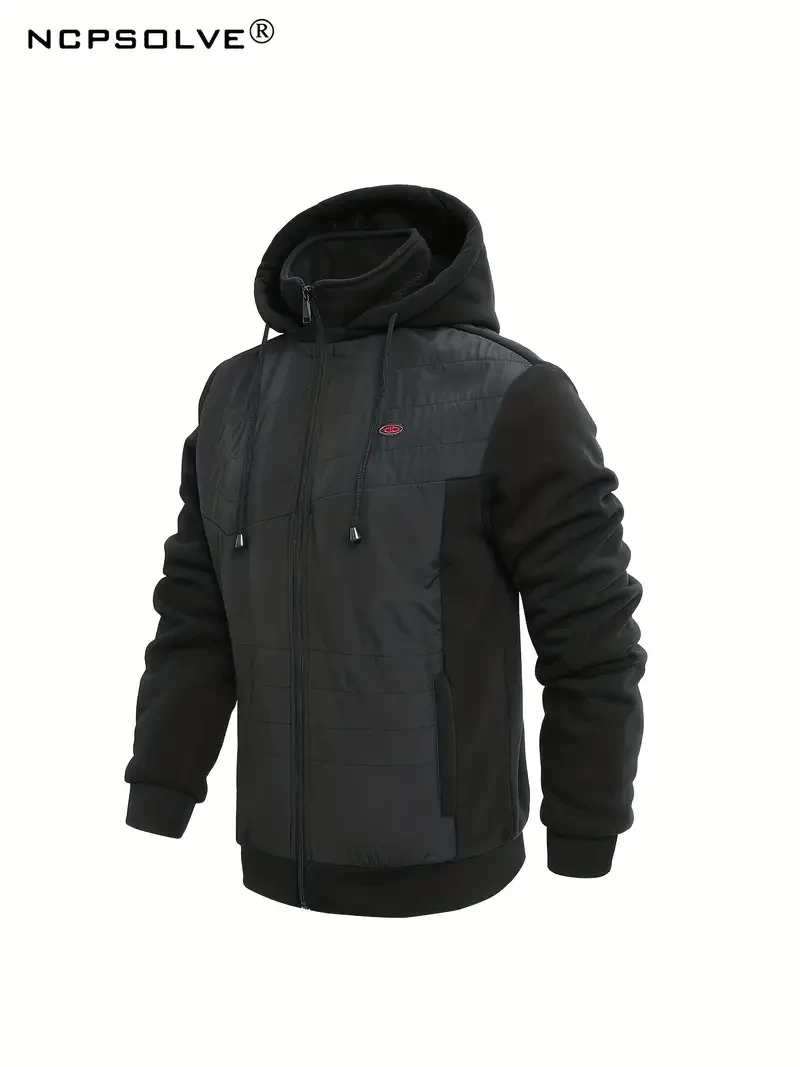 Men's Sports Suit, Active Solid Slightly Stretch Stand Collar Zip Up Thermal Hooded Jacket & Thick Comfy Pants For Winter