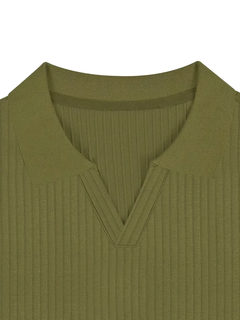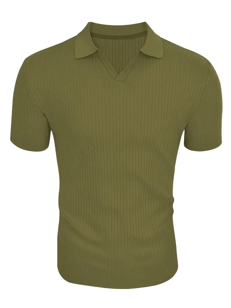 Men's V-neck Polo ribbed knit short sleeve golf jersey Muscle T-shirt
