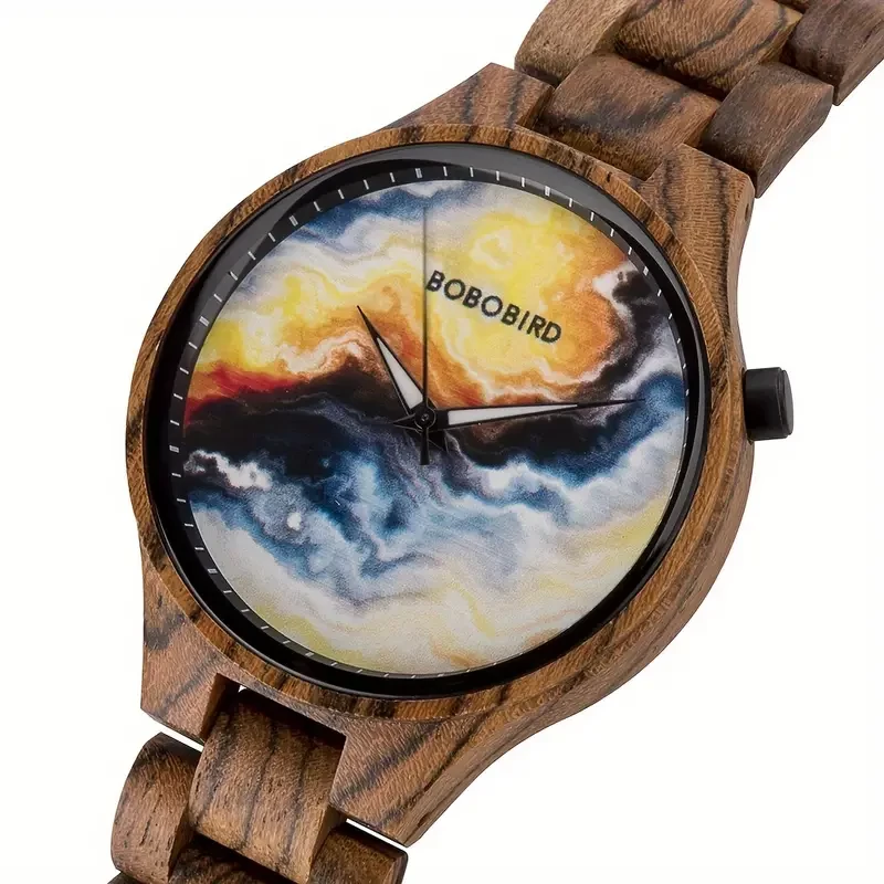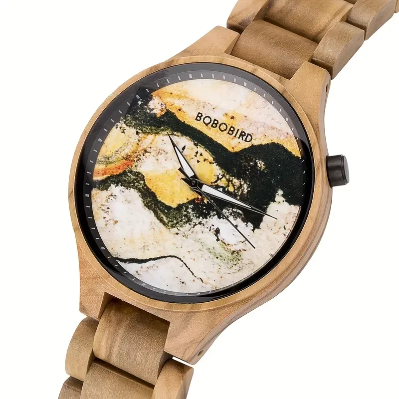 Mens Wooden Marbling Dial Wristwatches With Adjustable Wood Band, Fashion Casual Watch With Luminous Hands For Father's Day