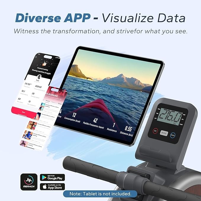 MERACH Rowing Machine, Magnetic Rower Machine for Home, 16 Levels of Quiet Resistance, Dual Slide Rail with Max 350lb Weight Capacity, App Compatible