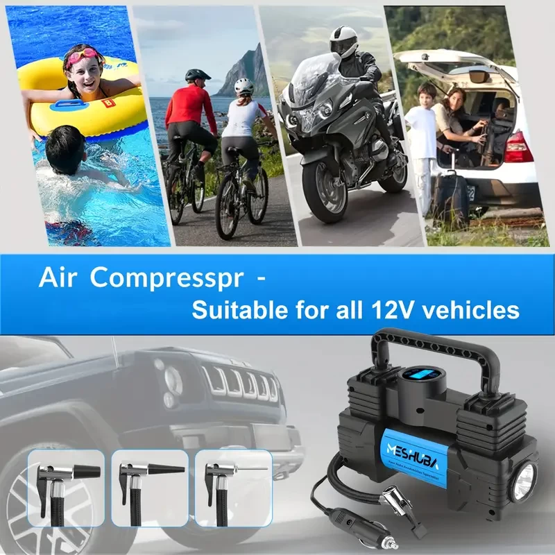 MESHUBA Tire Inflator Portable Air Compressor, 150PSI Air Pump For Car Tires With Digital Pressure Gauge For Car Bike Motor Ball, Blue
