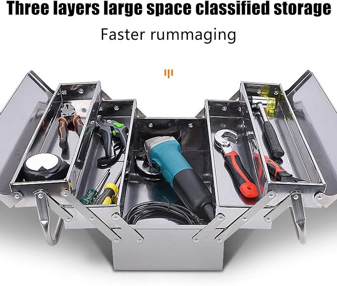 Metal Tool Box, Portable Folding Stainless Steel Storage Box 3 Layer 5 Tray Multi Function Tool Organizer Heavy Duty Rust Resistant Scratch Resistant Finish Cantilever Toolbox (460)