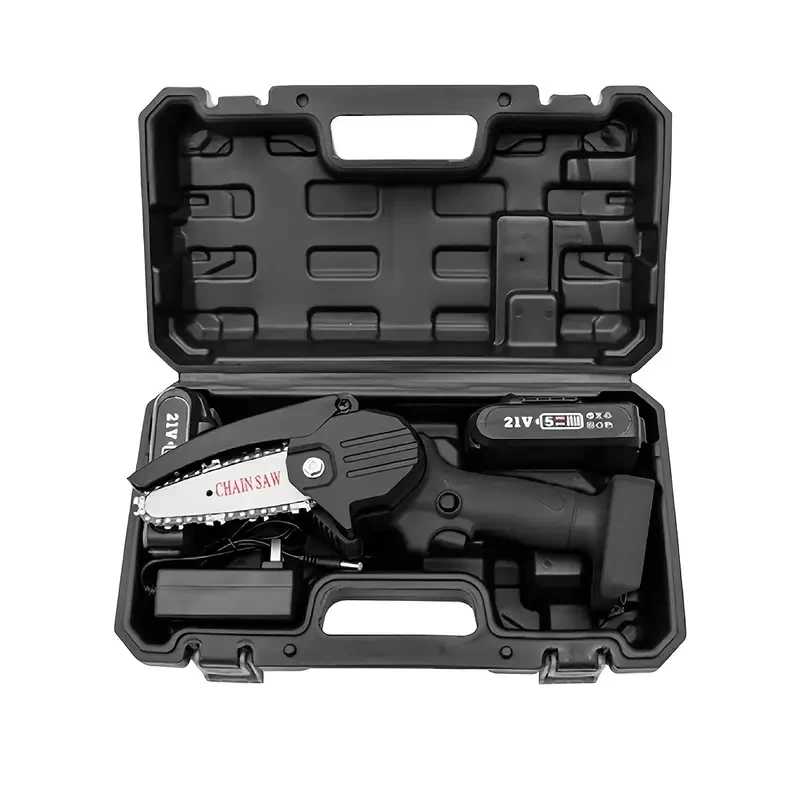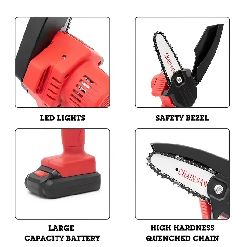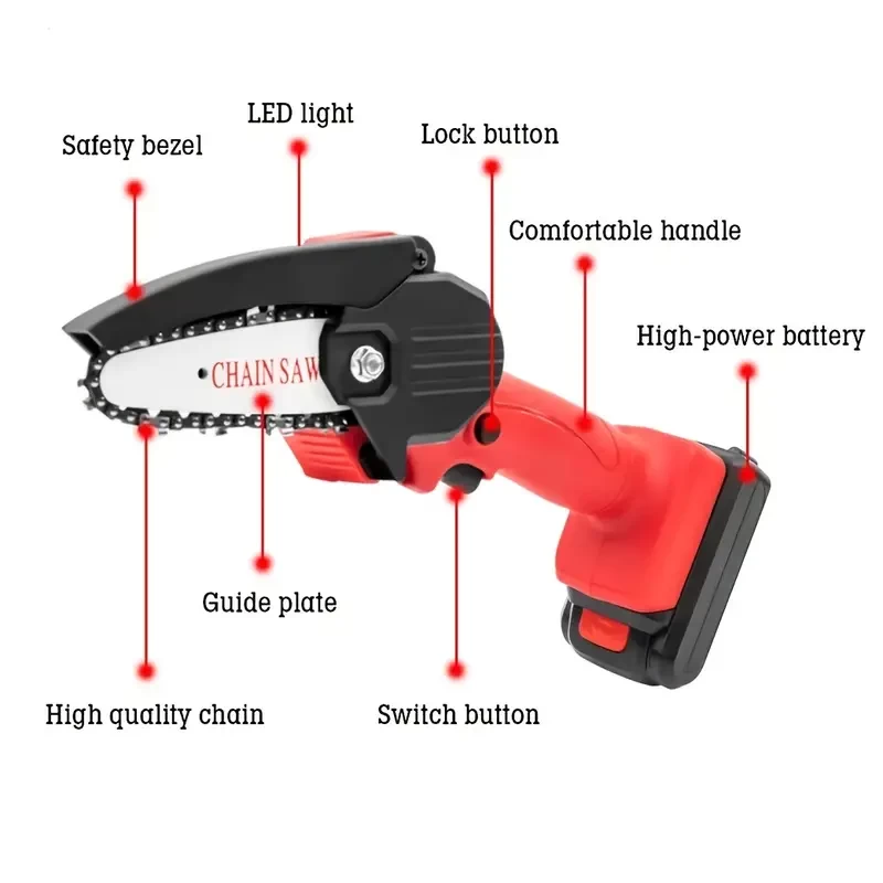 Mini 4inch Chainsaw Cordless, Handheld Mini Chain Saw For Wood Cutting Tree Trimming, Battery Powered Electric Chainsaw, With 2 Batteries, Black/Red