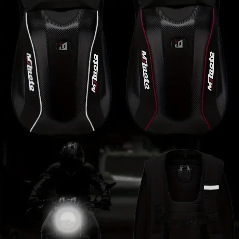 MJMOTO Carbon Fiber Motorcycle Backpack Motocross Helmet Bag Waterproof Motorsport Riding Backpack Expandable Hard Shell Bags