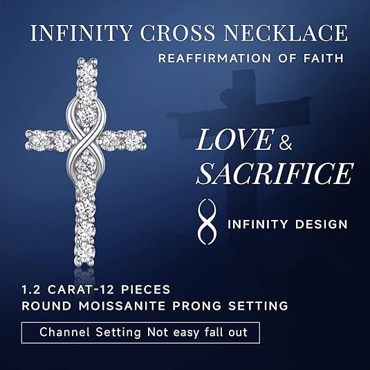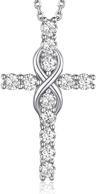 MomentWish Cross Necklace Silver, Christian gift Unisex Moissanite necklace Give him a 925 sterling silver cross necklace birthday Father's Day Christmas gift