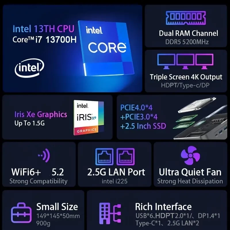 MOREFINE S600 13th Gen Intel MINI PC Computer With 2*DDR5 2*PCIe 2*2.5G LAN I7 13700H Mini PC For Windows 11 Pro Desktop Mini Pc WiFi 6
