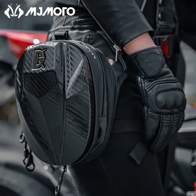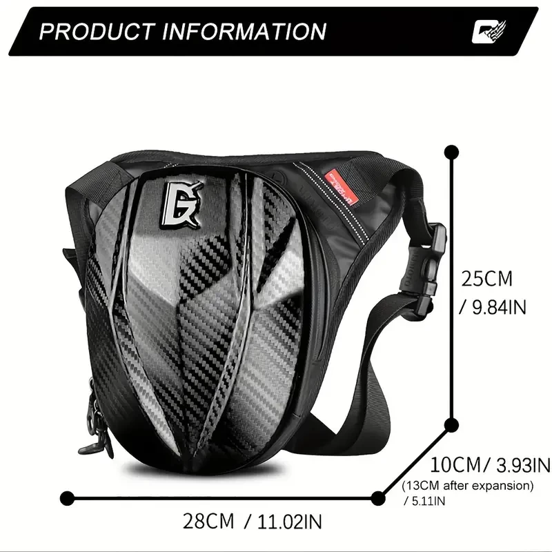 Motorcycle Leg Bag, Multifunctional Motorcyclist Waist Pack Waterproof Durable Geometric Carbon Fiber Pattern Hard Shell Hip Bag