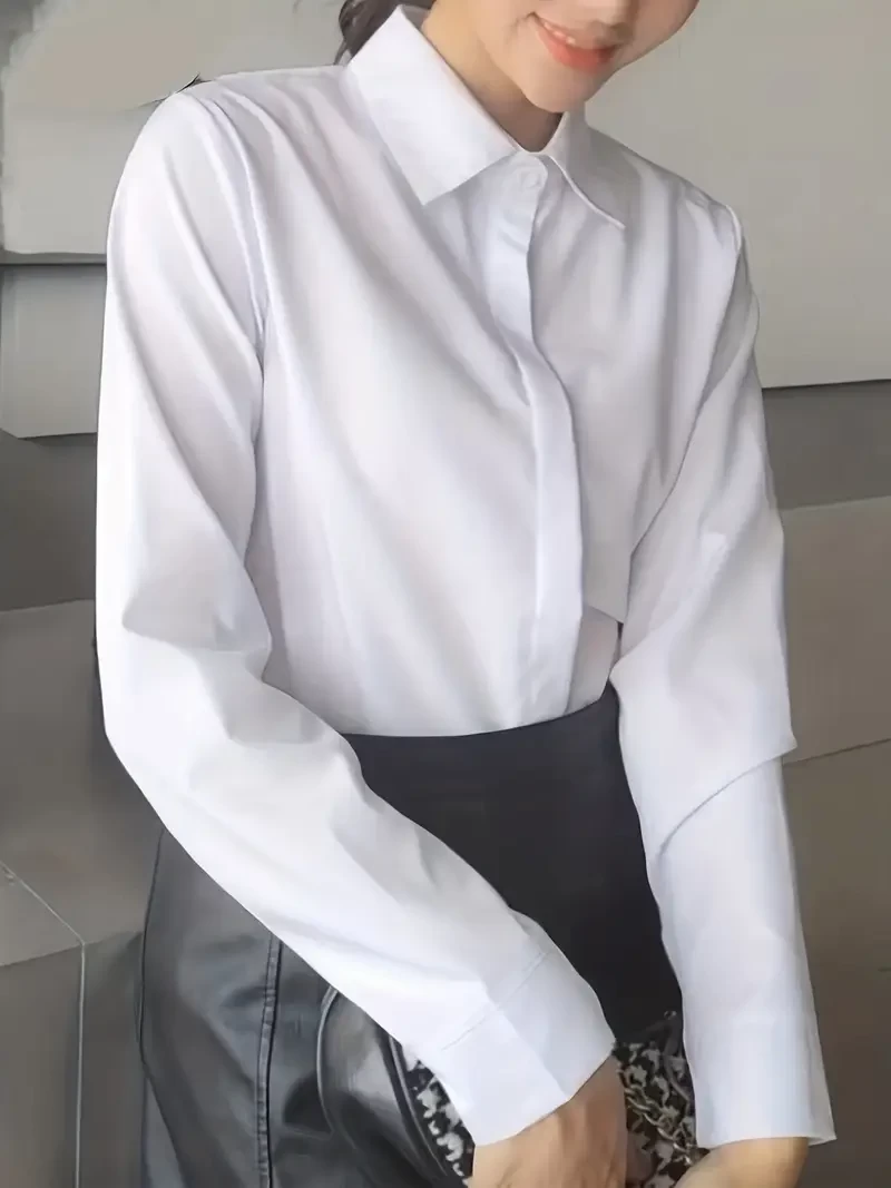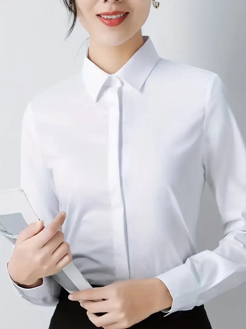 One-color neckline shirt, business formal long-sleeved shirt for work and office, women's wear
