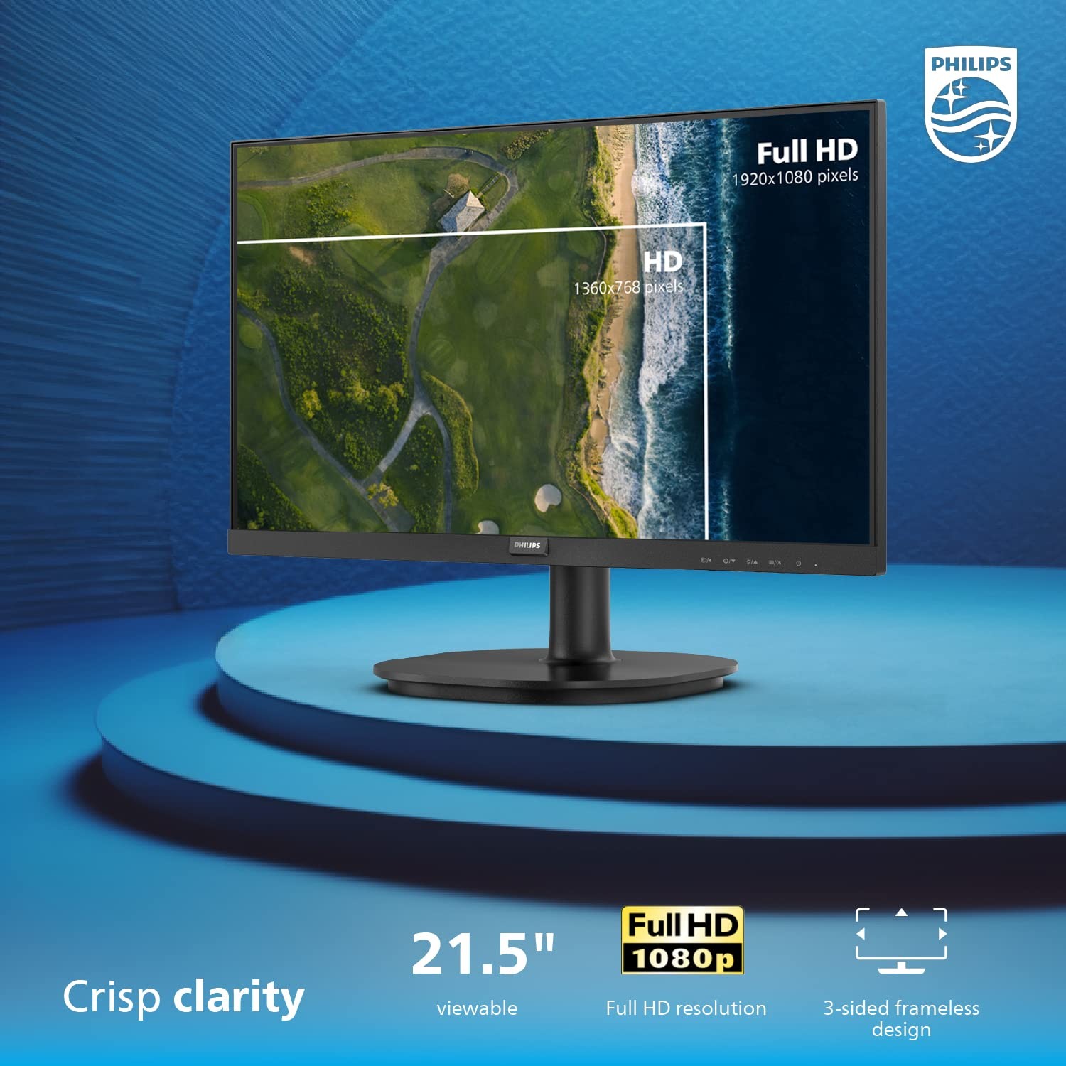 PHILIPS 22 inch Class Thin Full HD (1920 x 1080) 75Hz Monitor, VESA, HDMI & VGA Port
