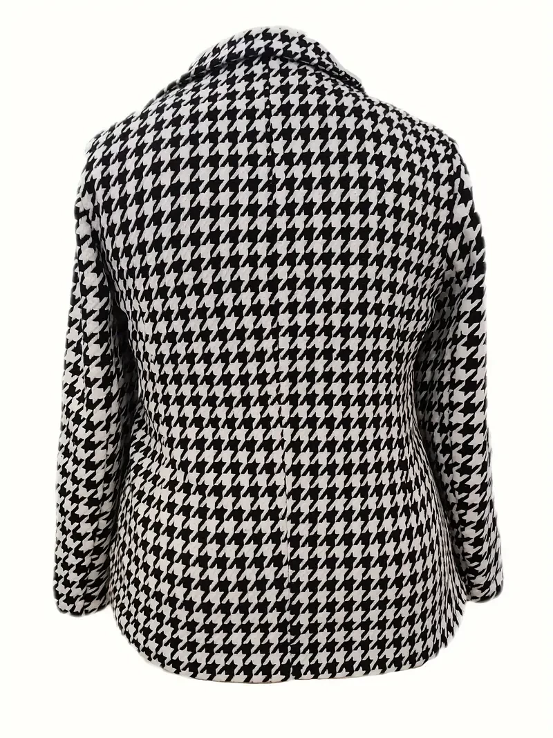 Plus Size Casual Blazer, Women's Plus Houndstooth Print Long Sleeve Lapel Collar Button Blazer