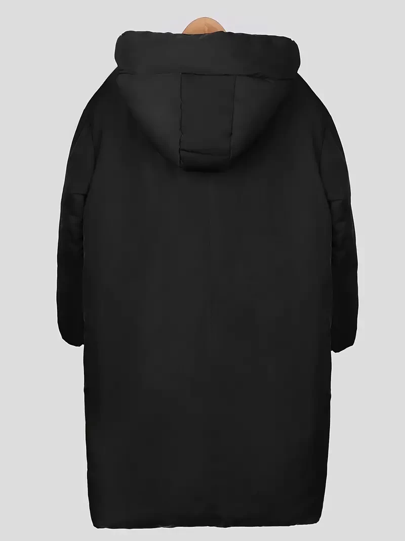 Plus Size Hoodie Longline Puffer Coat, Women's Plus Elegant Solid Down Coat Winter Coat