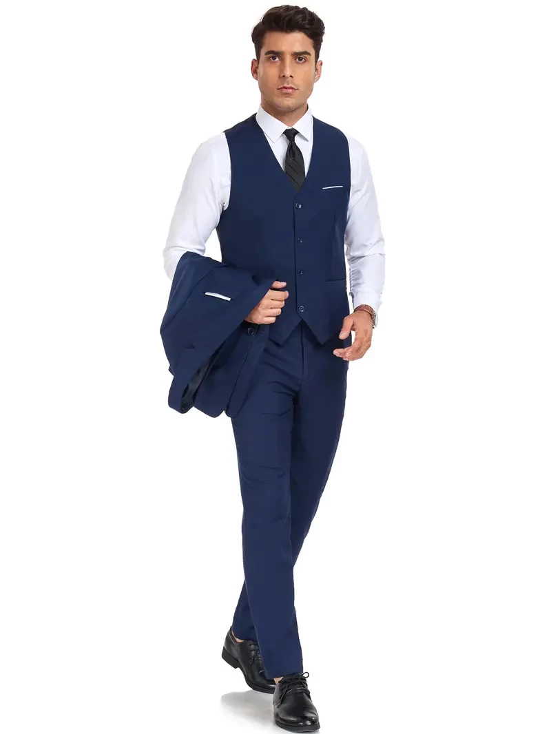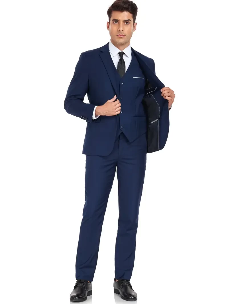 Plus Size Men's 3Pcs Suit Set, Blazer + Suit Pants + Waistcoat Set For Party/business/Formal Prom, Men's Clothing