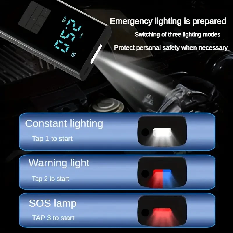 Portable Cordless Car Battery Emergency Starter,Tire Inflator, Air Compressor Easily Inflates Tires, LED Display, With Flashlight, Mobile Power Supply