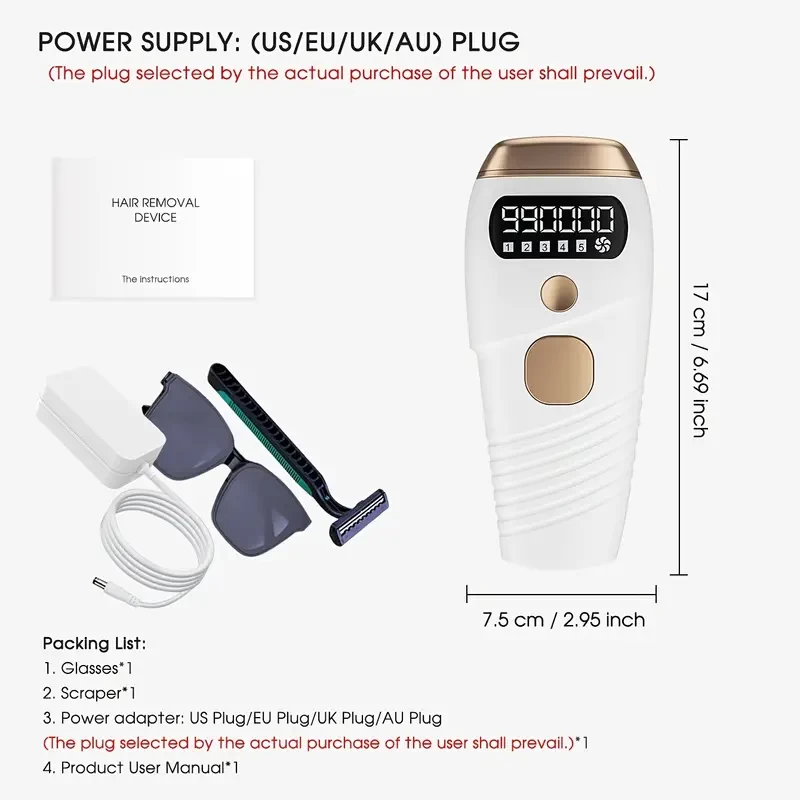Professional 999,999 Flashes Laser Hair Removal 5 Levels LCD Display IPL Laser Epilator Permanent Painless Electric Epilator For Women Bikinis Whole Body Laser Hair Remover Machine
