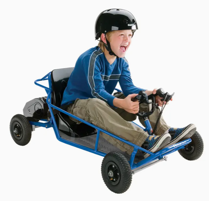 Razor Retro one-man electric compact steel frame go-kart dune budge, suitable for ages 8 and up, maximum load capacity 120 pounds, blue