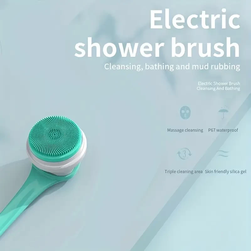 Rechargeable Electric Body Bath Brush with Long Handle and 5 Spin Shower Facial Brush Heads - Waterproof Silicone Body Scrubber for Deep Cleansing and Exfoliating - Ideal for Women and Men