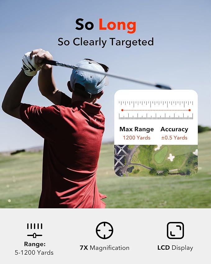 REDTIGER Golf Rangefinder with Slope, 1200 Yards Laser Range Finder Golfing, 7X Magnification, Flag Pole Locking Vibration, Rechargeable Range Finders with Magnet Stripe