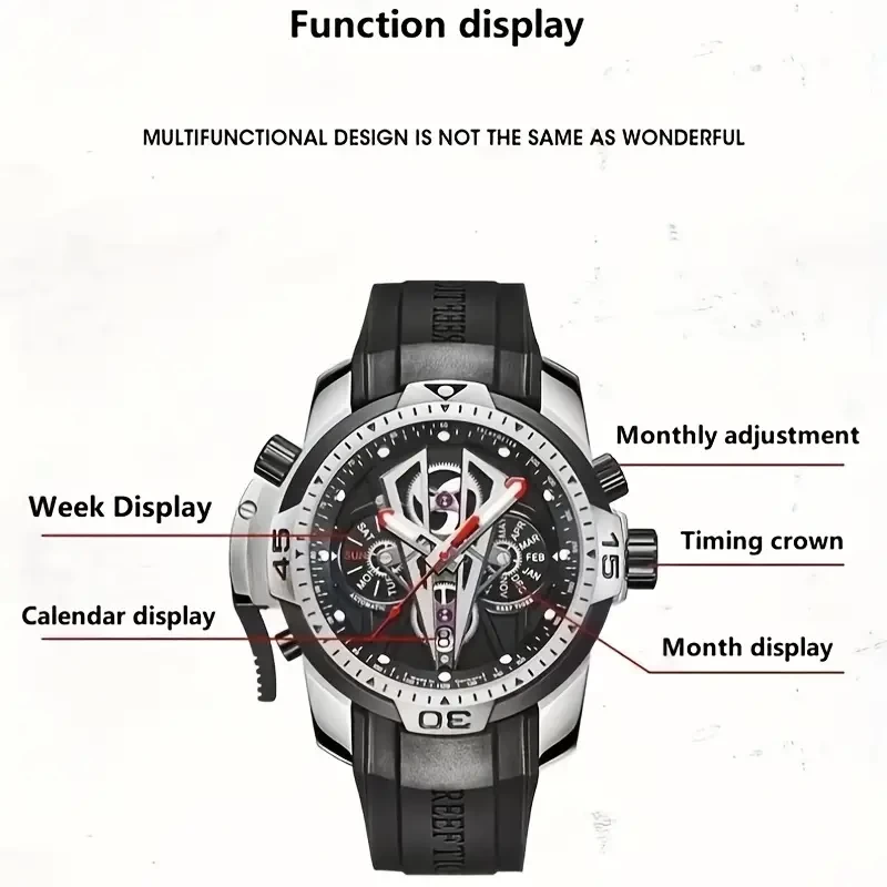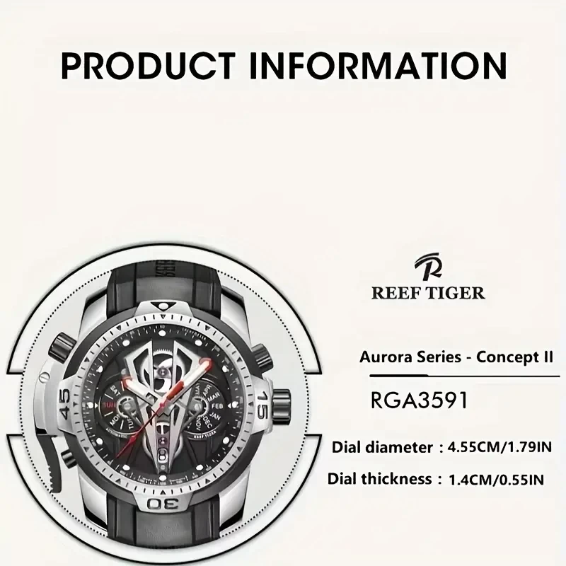 REEF TIGER Watch With Steel Band, Large Dial Mechanical Fully Automatic Waterproof Wristwatch