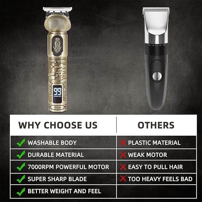 REHOYO Beard Trimmer for Men, Waterproof Cordless Hair Clipper, Electric Razor Shaver, Mens Grooming Kit for Mustache Nose Body Facial Hair, Rechargeable Beard Trimmer Kit, Gifts for Men