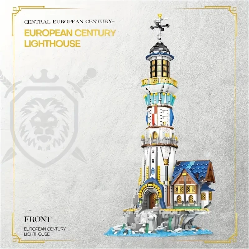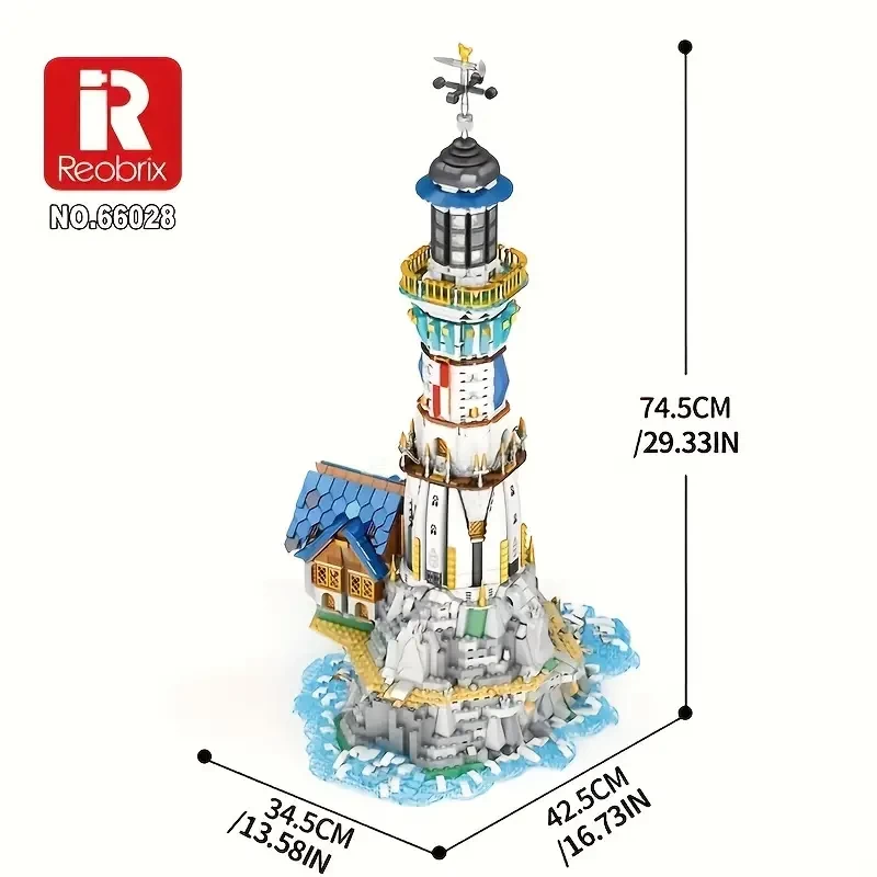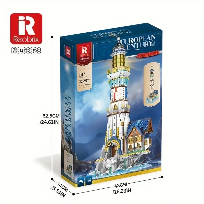 Reobrix 3228pcs Medieval Lighthouse Building Blocks Toy - Layered Quick Release Design - Built-in LED Light - Creative Decorative Building Blocks Christmas Gift - Desktop Three-dimensional Ornaments