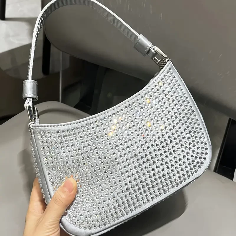 Rhinestone Handbag, Shiny Bling-Bling Hobo Bag, Women's Evening Purse For Wedding Party Prom Banquet