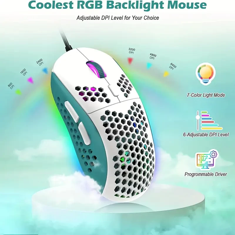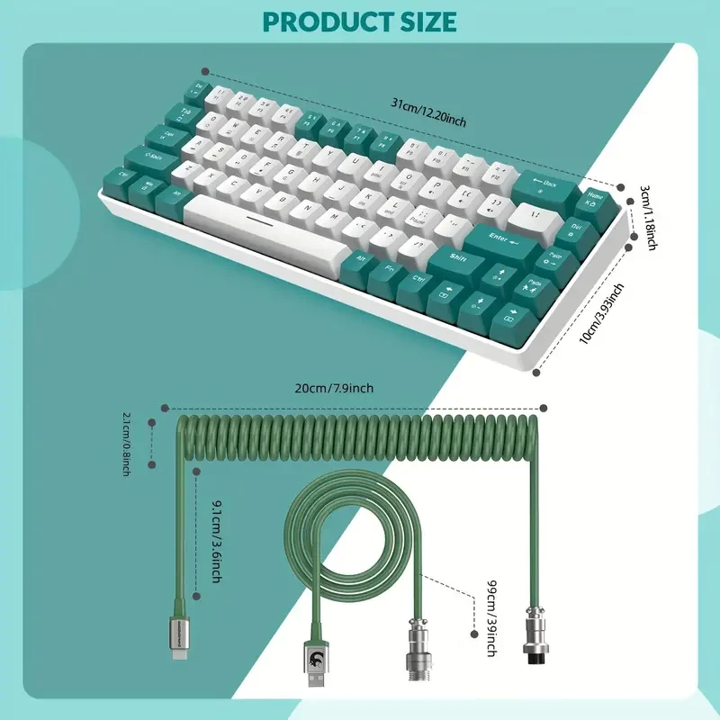 RK-T8PR0 Wired 65% Mechanical Gaming Keyboard And Mouse Combo With RGB LED Backlit Anti-ghosting TKL Mini 68 Key Coiled C To A Cable Tactile Blue Switch For PS4 PS5 Xbox PC Mac Gamer