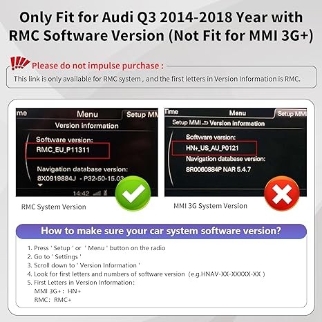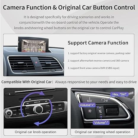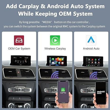 Road Top Wireless Carplay Android auto module for Audi Q3 2014-2018, with RMC software version (not available for MMI 3G+),Carplay modded kit decoder, Mirrorlink camera support