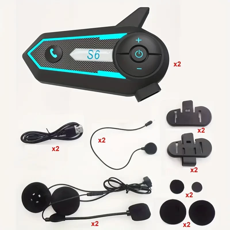 S6 Wireless 5.2 Motor Helmet Headset Intercom Handsfree Call Kit Anti-interference 1000M Wireless Moto Earphone Waterproof Music Player Ambient Light