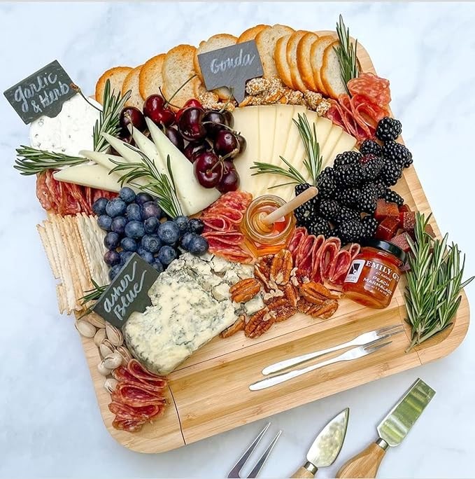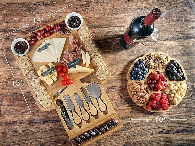 SIMOSITO Large Deli Board with Gift Box and Velvet Bag - Cheese Board with knife set, tray and fold cutter - Valentine's Day gift for Mom, lady's birthday gift, new home gift