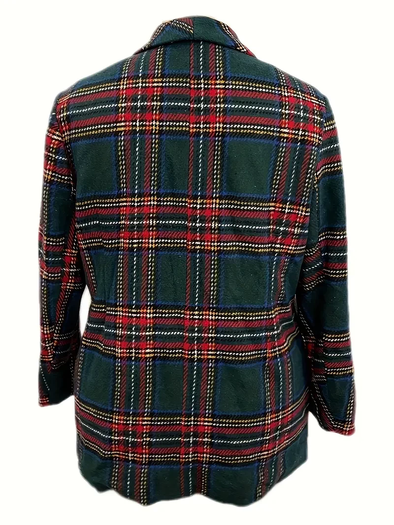 【 Size please note 】Plus Size Casual Blazer, Women's Plus Plaid Print Button Decor Long Sleeve Shawl Collar Blazer