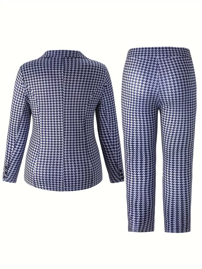 【 Size please note 】Plus Size Houndstooth Two-piece Set, Long Sleeve Lapel Blazer & Pants Outfits, Women's Plus Size Clothing