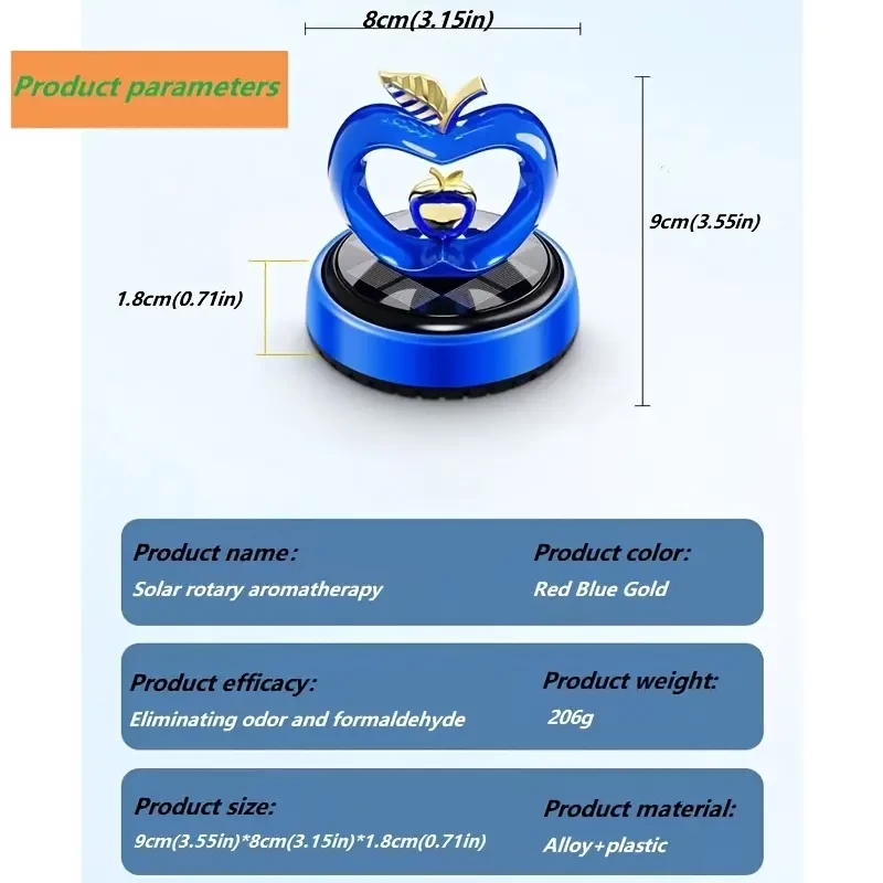 Solar Car Heart-shaped Aromatherapy Car Ornaments Perfume Seat Center Console Creative Rotation Decoration Without Aromatherapy Liquid.