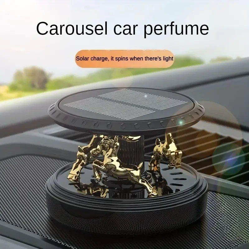 Solar Powered Carousel Car Aromatherapy Car Decoration, Long Lasting Light Fragrance For Car, Creative Automotive Decoration