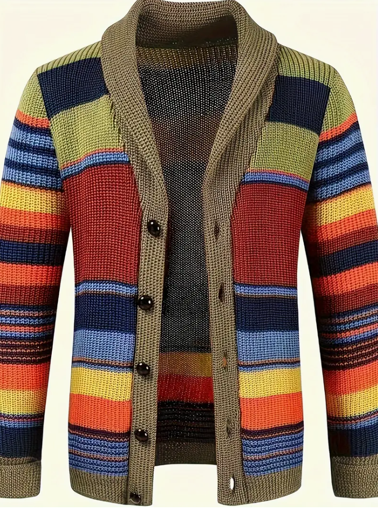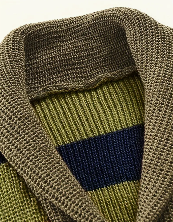 Spring and winter plus-size men's color contrast knit cardigan sweater